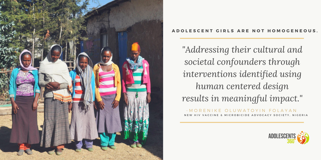 It is important to understand that adolescent girls are not homogenous. There are interventions appropriate for adolescents based on their culture, geographical locations, age segmentation, marital status and a whole lot more confounders. Understanding these confounders and addressing them through the mix of a combination of interventions identified using a human centre design approach will result in meaningful impact.