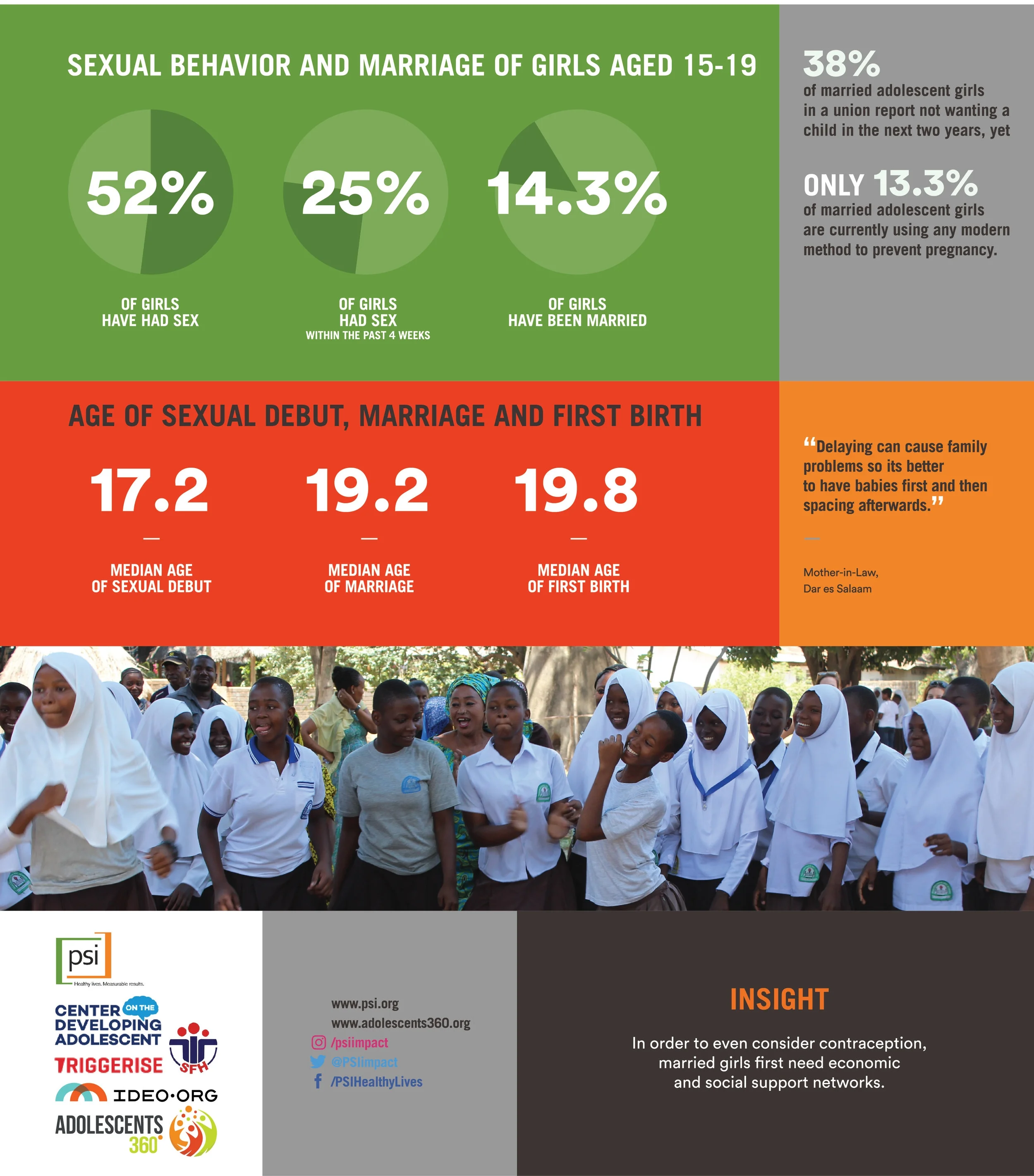This document is intended to capture learning derived from A360’s prototyping with married girls and their influencers in Tanzania. It reflects the voices of the people the A360 team met and complements earlier insight work focused on unmarried girls as the team seeks to identify overlapping and divergent design opportunities for the two groups. (2017)